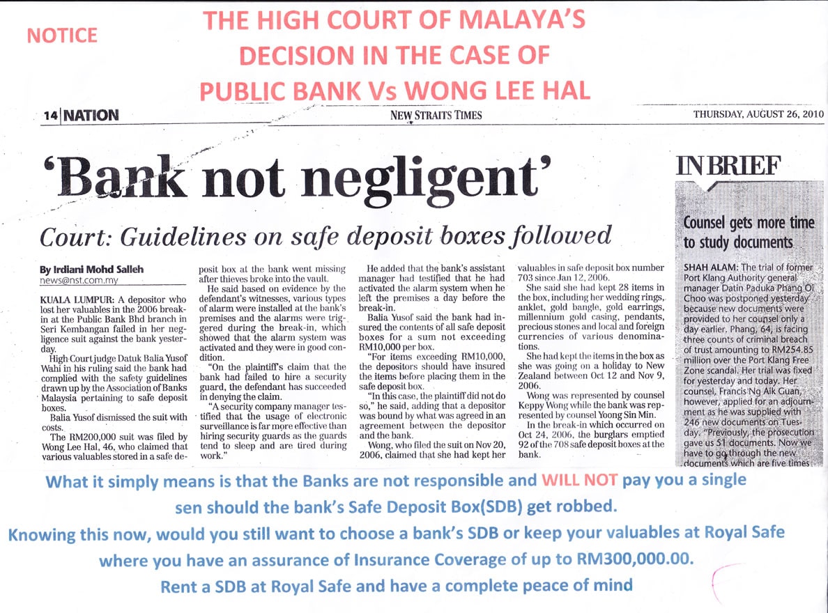 Di mana kedudukan bank dan di mana kedudukan peti simpanan selamat saya?
