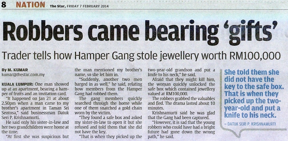 Penggera keselamatan mengakhiri pesta rompakan berkumpulan hujung minggu